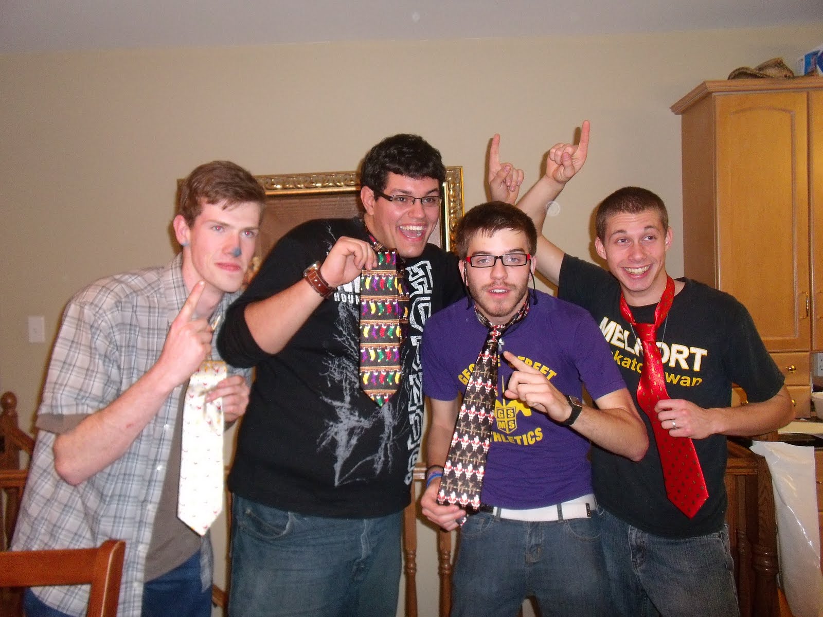 -les gars, lorsqu'on a reçu nos cravates genre Noël, de la belle famille de Christiana